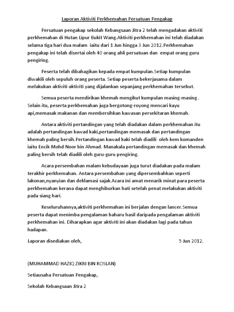 Contoh Karangan Lapaoran Tentang Aktiviti Perkhemahan By Ise_387Kianna 23 May, 2022 Post a Comment Karangan Perkhemahan Pdf Contoh Karangan Laporan Perkhemahan Pdf Contoh Karangan Laporan Perkhemahan Pdf Laporan Aktiviti Perkhemahan Persatuan Pengakap Pdf Laporan Perkhemahan Unit Beruniform Pdf Share No comments for "Contoh Karangan Lapaoran Tentang Aktiviti Perkhemahan"